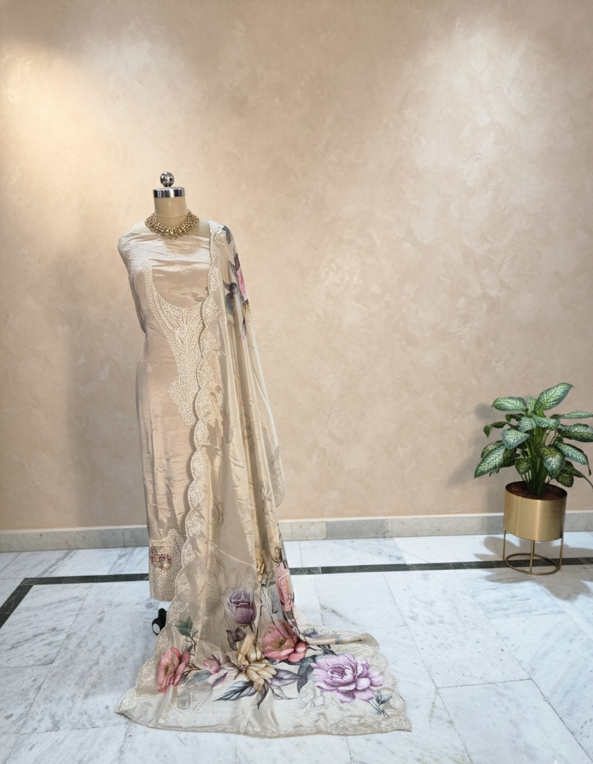 Dupatta Fabric: Digital Printed Ivory